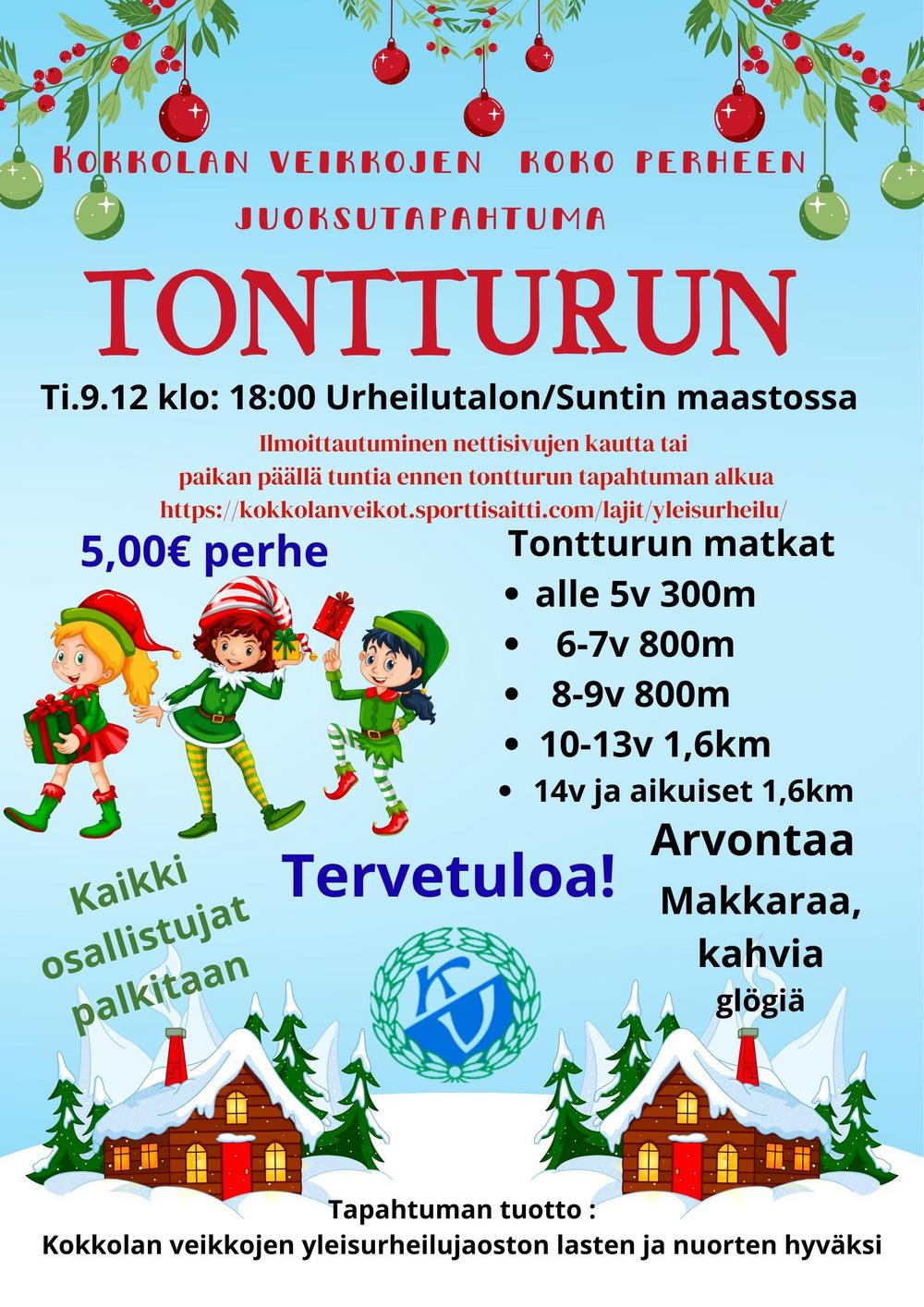 Tontturun juostaan jälleen 9.12.2025 klo 18:00 alkaen urheilutalon maastossa. Ilmoittaudu mukaan iloiseen tapahtumaan ja tuet samalla lasten yleisurheilua :)